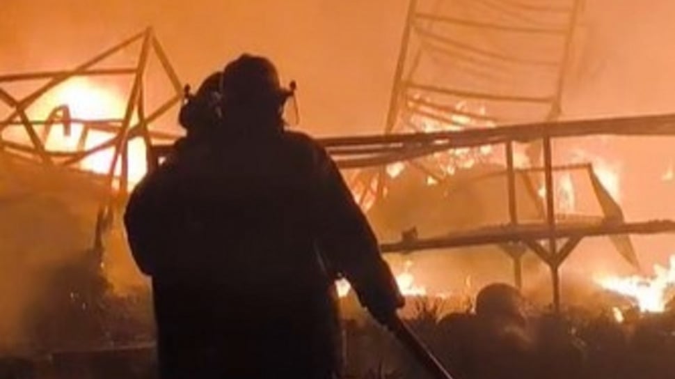 Petugas Damkar kesulitan memadamkan api besar karena material mudah terbakar dan terhambat oleh ribuan warga yang berkerumun di lokasi untuk menonton atau membuat konten.