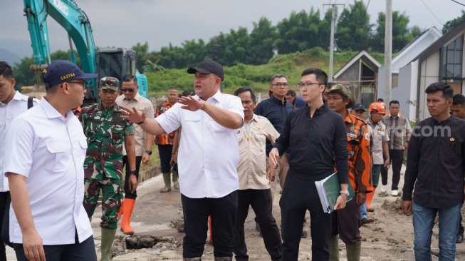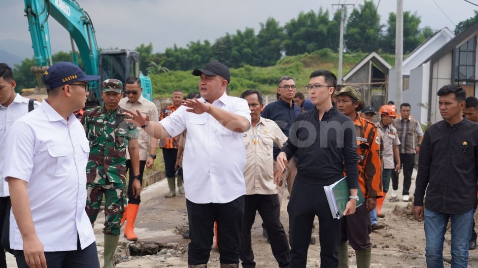 - Bupati Bogor, Rudy Susmanto, meninjau langsung potensi pergeseran tanah di Sukamakmur pada Selasa (3/2/26).