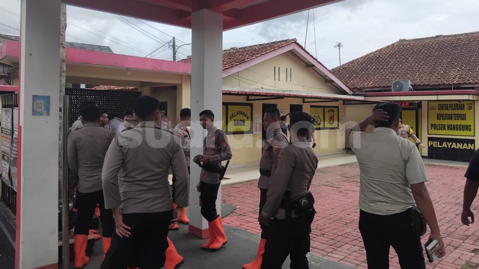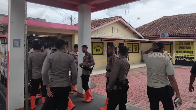 Anggota Polisi Bersiaga di Polsek Nanggung Menyusul Adanya Korban yang Masih Terjebak di Lubang Tikus Area PT Antam Pongkor Bogor [Andi Ahmad S/Suara.com]
