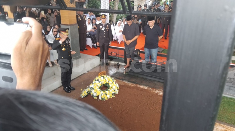 Suasana haru menyelimuti sepanjang prosesi pemakaman Eyang Meri Hoegeng dimakamkan secara kedinasan dan upacara kebesaran Polri.